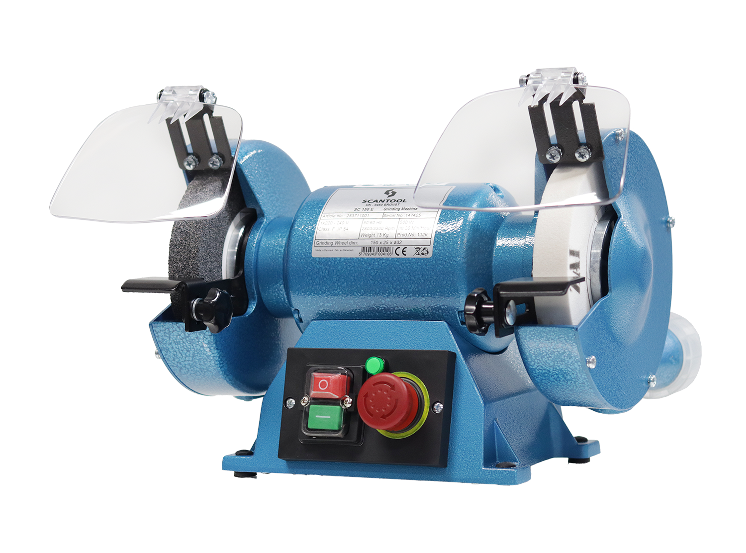 Touret d’établi pour ponçage et polissage destiné à l’industrie. SC 200T (3x400V) avec meule blanche, meule fine et meule grossière NK.